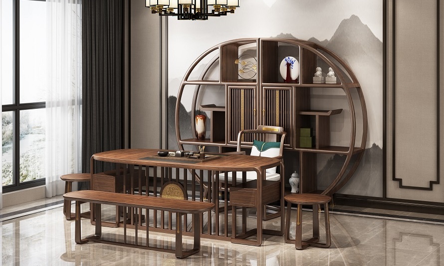 鴻熙系列新中式烏金木高管桌
