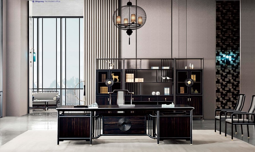 鴻熙系列新中式烏金木高管桌