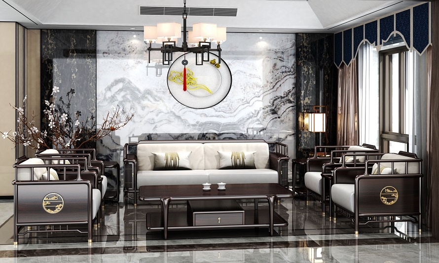 鴻熙系列新中式烏金木高管桌