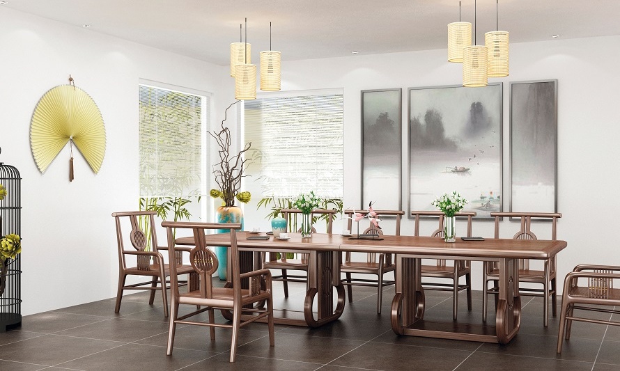 鴻熙系列新中式烏金木高管桌